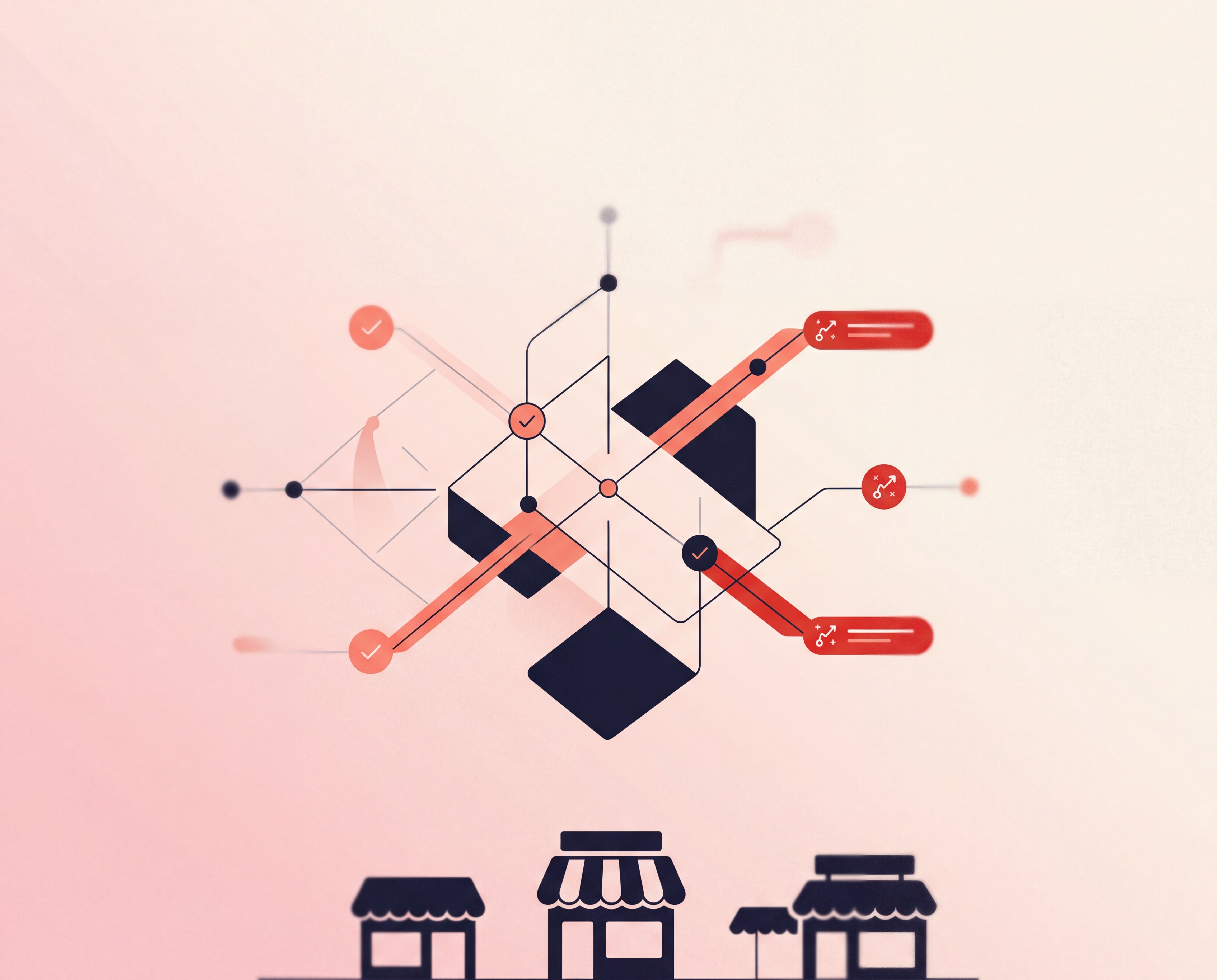 Abstract visualization of AI agents recommending local businesses in Tampa with connected nodes and data streams
