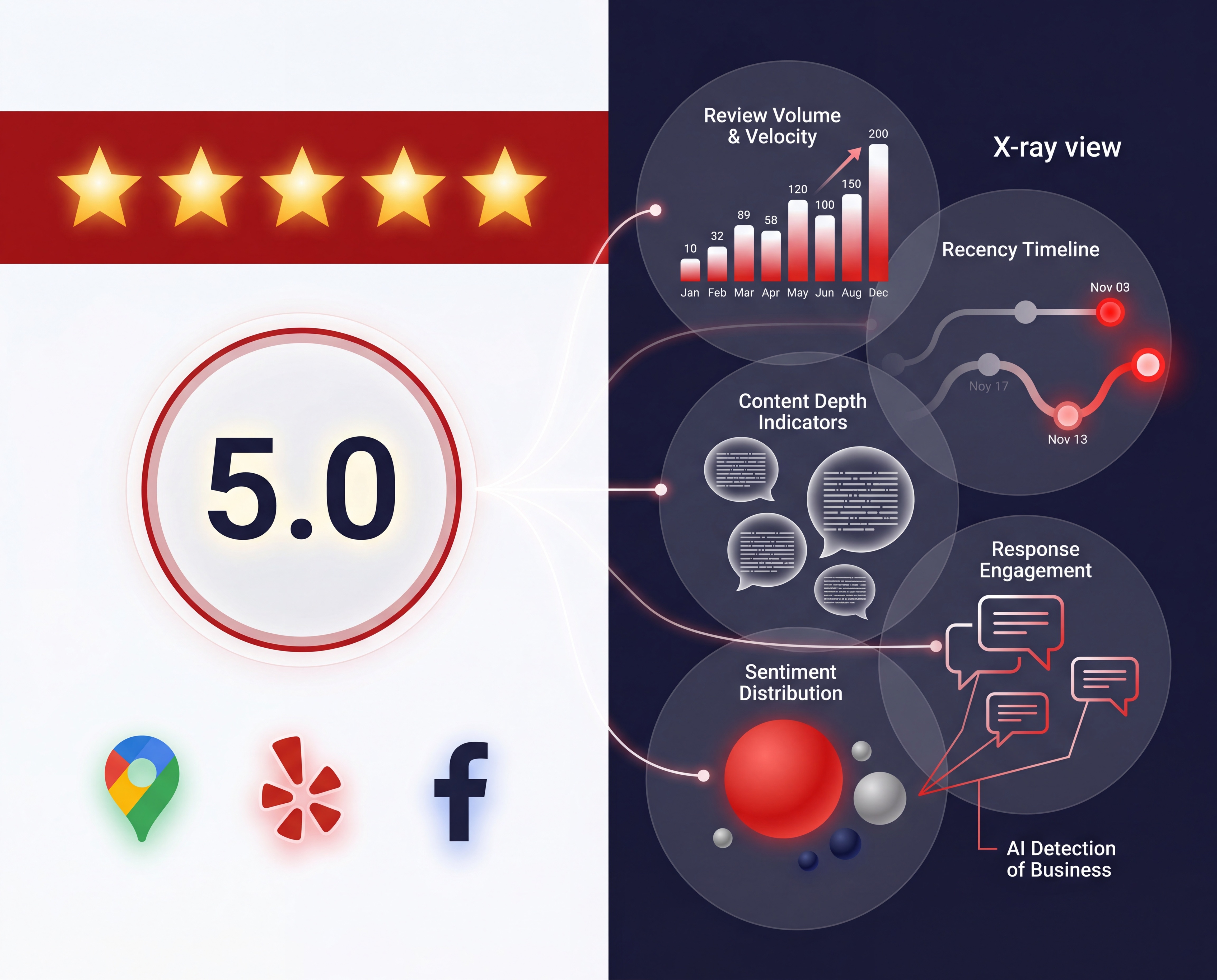 You've got dozens of five-star reviews, but AI systems still aren't recommending you. Here's why: AI platforms don't trust star ratings alone. They evaluate review volume, recency, content depth, response patterns, and multi-platform presence. Learn what AI actually sees and how to optimize for recommendation visibility.