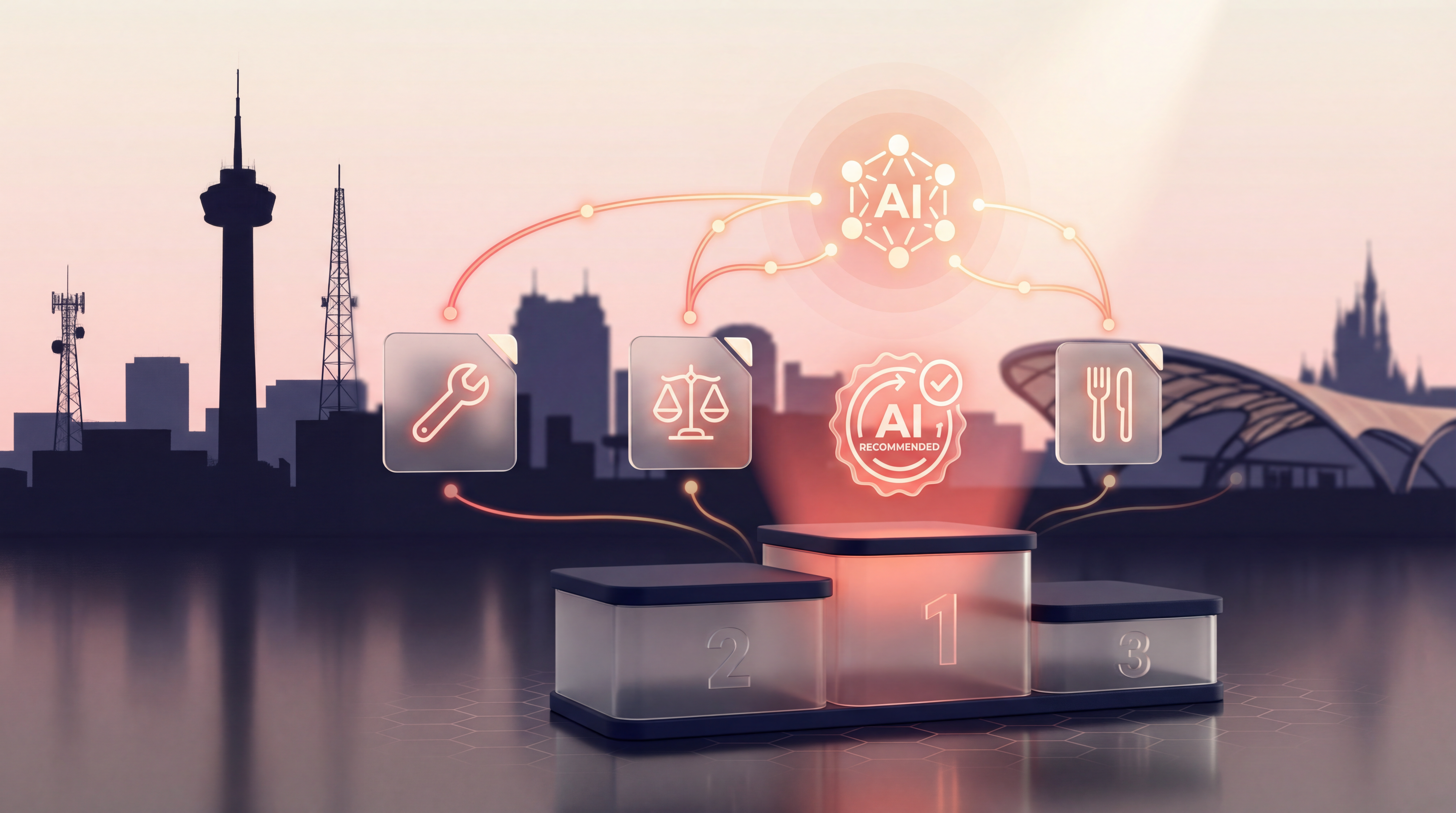 Modern professional illustration showing ChatGPT recommendations with business visibility and local search concepts